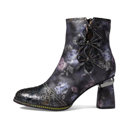 - Sophistication meets style with this chic L'Artiste by Spring Step Carre booties! The pop of multi-colored metallic blends together perfectly with beautifully printed floral designs. The floral-printed wrapped heel seamlessly complements the upper design, creating a stunning visual appeal. A sleek metallic cap toe design that adds a touch of glamor. Three decorative ribbons adorn the outside, adding a unique and playful twist. To top it off, contrasted rainbow stitching around the welt adds an unexpected pop of color, making these booties a standout choice for the fashion-forward individual.