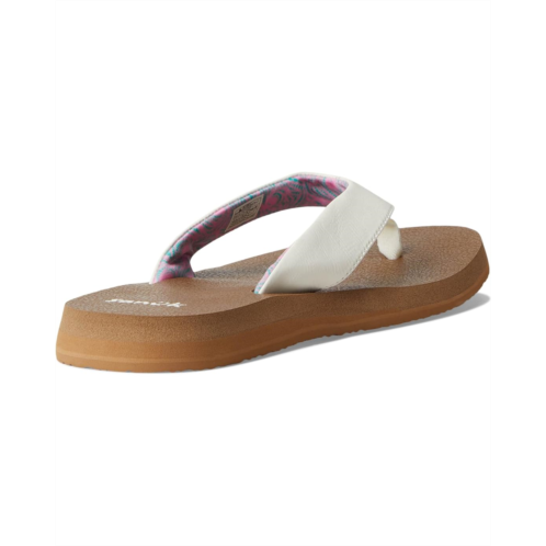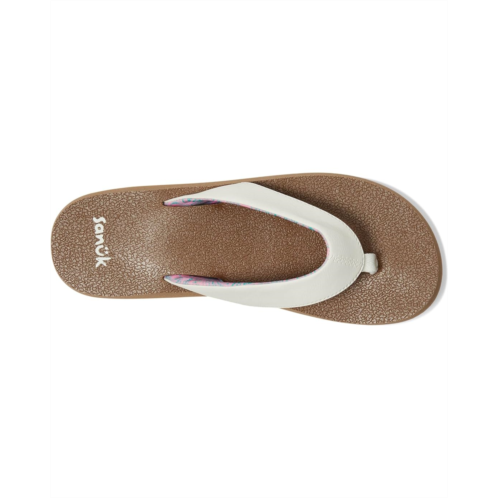 - Introducing the Sanuk Yoga Mat II slippers, designed to bring a smile to your face with every step. This slip-on footwear features a printed jersey lining that adds a touch of style, combined with the original memory foam Yoga Mat footbed that molds to your foot for unparalleled comfort. The custom Happy U wave tread sponge rubber outsole, made with 53% recycled material, provides excellent traction.