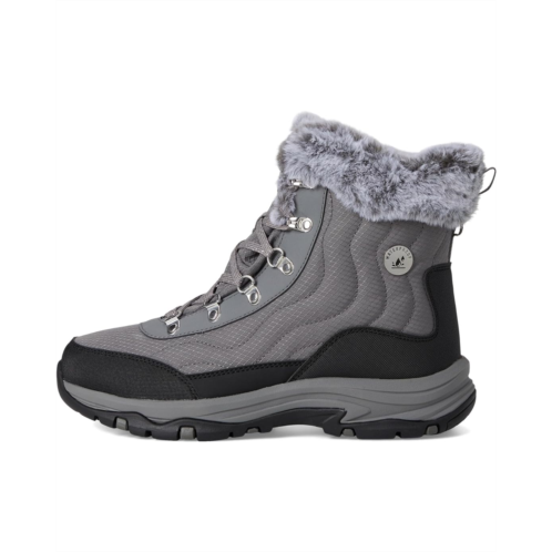 - Keep it cozy this season in rugged comfort wearing the SKECHERS Trego - Stormie. The lace-up hiking boots feature waterproof synthetic and mesh upper, faux-fur lined trim and Skechers Air-Cooled Memory Foam cushioned comfort insole. The ankle-high shoes have fabric lining, waterproof seam-sealed design, and round toe design.