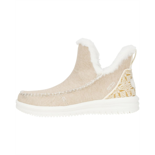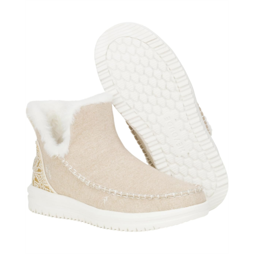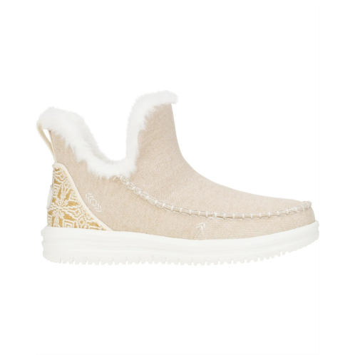- The Hey Dude Camden Brushed Cozy boots keep your feet warm all day. Featuring an easy slip-on system, these boots are crafted with a water-resistant, premium leather upper that offers superior comfort and durability. The EVA insole and faux fur lining offer long-lasting comfort and warmth. Step out looking fresh whatever the weather wearing these mid-top boots.