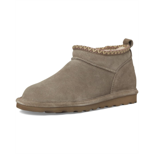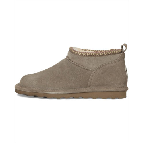 - Treated with BearCoat for added comfort and durability, the Bearpaw Super Shorty Deco boots keep your feet warm and toasty all day. The suede upper, wool blend lining, and a removable comfort wool blend footbed provide long-lasting comfort and warmth. Let your feet stay happy and warm in the cold weather wearing these pull-on boots.