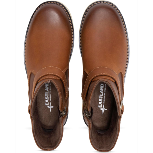 - High in quality and versatile in appeal, the Eastland 1955 Edition Angie Boots are comfortable on the very first wear and handle every style like a champ. Grounded on a fully-lined, memory foam cushioned insole for all-day comfort, these ankle-high Chelsea boots come with a full-grain leather upper with a rounded toe, a buckled strap, and a zippered side closure.