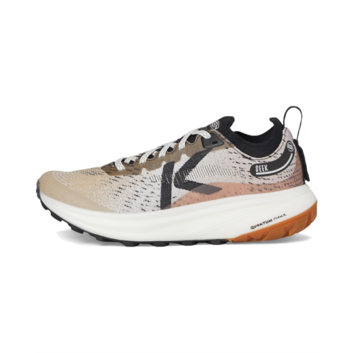 - Take every step with style and confidence wearing the KEEN Seek Trail Running Shoes. Ultra abrasion-resistant performance textile uppers provide not only long-lasting durability but also the breathability needed for a warmer weather trail run. The breathable lining adds to comfort while running. Original Fit has generous space across the forefoot for toes to splay. Lace garage stretch pocket keeps laces securely tucked in. Padded tongue and collar allow for enhanced comfort, while the tie lace system ensures a secure fit. QuantumFoamX high-energy cushioning is added for more fluid runs with longer-lasting comfort. High-abrasion formulation of KEEN.ALL-TERRAIN rubber outsole offers incredible durability and longer-lasting traction and the 4mm multi-directional lugs offer traction. Its gaiter ready with a reinforced cutout in the upper and hook-and-loop attachment in the heel. The natural, pesticide-free odor control keeps feet fresh. Plus, the ankle pull tab allows donning & doffing.