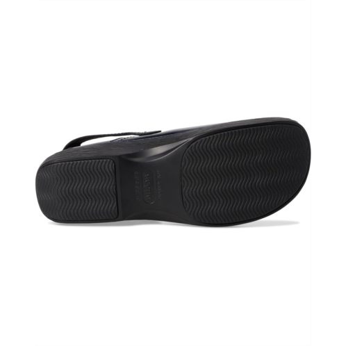 - Practical meets fashionable with the Alegria Olie, a sling-back leather clog. This twist on a timeless classic features a stain-resistant upper, padded sling-back strap with an adjustable buckle, and slip-resistant polyurethane outsole. This style also provides comfort with a durable microsuede removable footbed that can easily take it from medium to wide.