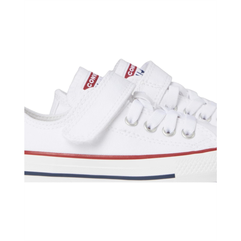 - The low-top Converse Kids Chuck Taylor All Star 1V Easy-On Sneaker gets redesigned for kids, with soft foam cushioning, plus softened stitches and linings. One hook-and-loop strap and elastic laces allow for easy on and off, securing the fit of the tongue label, diamond pattern toe bumper, and contrast midsole stripes. The high-top shoes also have a soft kid-friendly lining and a round toe shape.