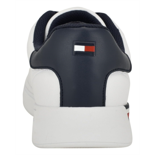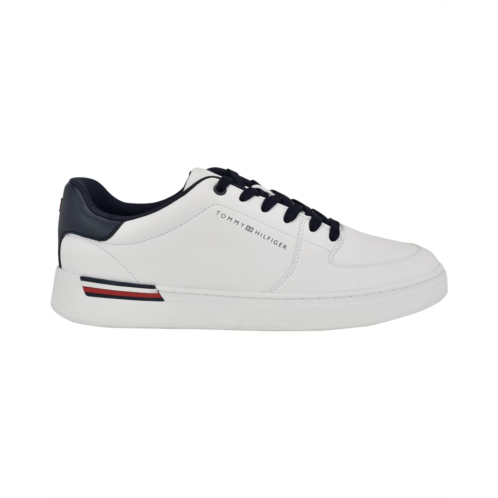 - Mixed materials, a classic round toe, and branded stripe detailing make up this Tommy Hilfiger Jorian Sneaker. The memory foam insole provides superior comfort. This style is also built to be more eco-friendly with 3 points of sustainability: recycled materials used within the lining, sock, and outsole.