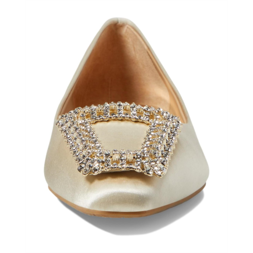 - Add a subtle shine to your look wearing the Badgley Mischka Emerie Flats. These slip-ons feature a bling rhinestone embellished buckle on the vamp and snip toe silhouette.