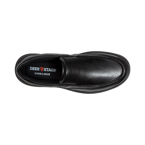- Feel the difference with every step styling Deer Stags Spartan's faux leather elegance. The updated S.U.P.R.O. Sock technology features a shock-absorbing heel cushion and rebounding Altron foam for all-day support. Enjoy lasting wear with EVA footbed and foam that maintains its shape, and easy slip-on convenience with dual flexible gore inserts.