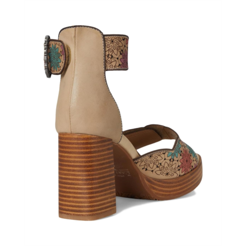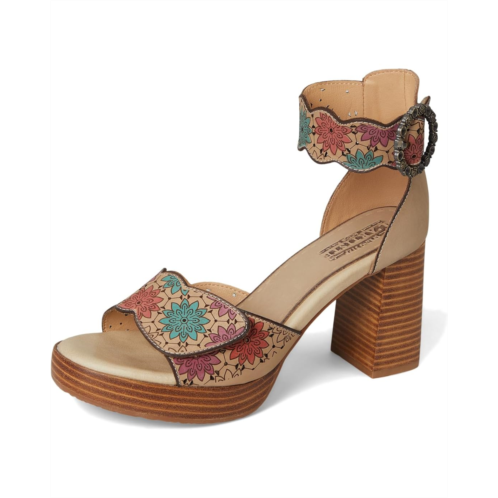 - Whether you're dressing up for a special occasion or adding a touch of glamor to your everyday look, L'Artiste by Spring Step Bangles Heels will elevate your style with effortless sophistication. Treat your feet to the luxurious comfort and head-turning style you deserve, and step out in confidence knowing you look. These open almond-toe heels are crafted with a floral printed leather upper beautifully adorned with a buckle and hook-and-loop closure for a custom fit. The faux leather lining and faux leather insole add comfort with every step you take. The block heel is designed for an elevated touch.