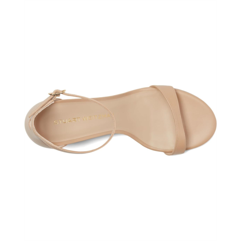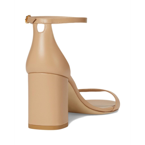 - Where style meets grace wear this beautiful footwear Nudist Block 75 by Stuart Weitzman Crafted with a sleek leather upper, lining, and insole, this stunning heel provides a sophisticated finish to any outfit. The stiletto heel adds the perfect amount of lift, while the buckle ankle strap ensures a secure and comfortable fit. With an open toe design, this shoe is your go-to for effortless glamor at every occasion.