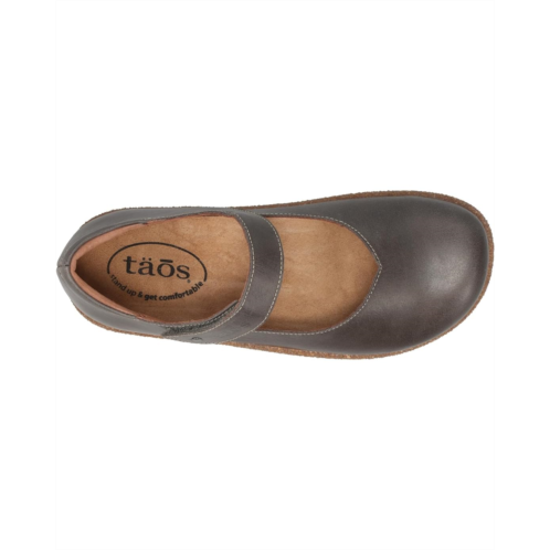 - Simple, elegant, and versatile, the taos Footwear Ultimate Mary Jane Flats are all set to become your go-to favorite! The shoes are constructed with a full-grain leather upper featuring a timeless round toe and a secure hook-and-loop instep strap closure, a breathable leather lining, and a suede covered, supportive, and removable Curves & Pods footbed for a buttery soft feel and superior arch support.
