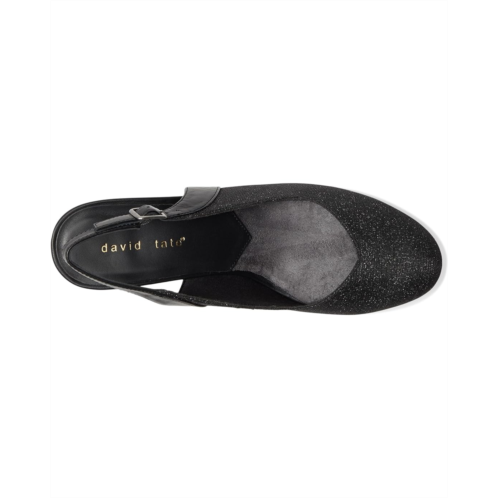 - The David Tate Avenue is a stunning and sophisticated slingback pump, crafted from exquisite sparkle fabric that catches the light beautifully. Designed for both style and comfort, it showcases a plush suede-covered footbed that cradles your feet for all-day wear. The shoe is balanced on a sturdy rubber heel, providing exceptional stability, while the elegant leather-wrapped French heel adds a touch of refinement to your look. Step into the Avenue and elevate your ensemble with unparalleled grace and charm!