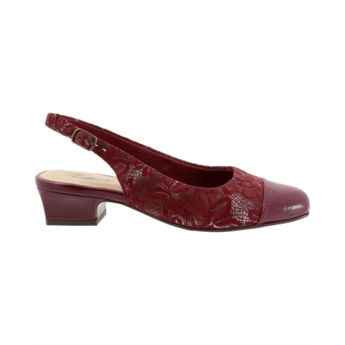 - The Trotters Dea flaunts a tailored sling-back design with a premium leather upper and adjustable buckle closure. Lining is silky-soft microfiber with light padding underneath.