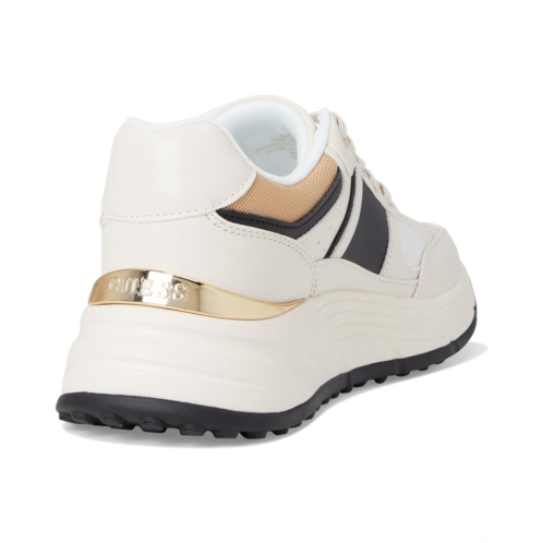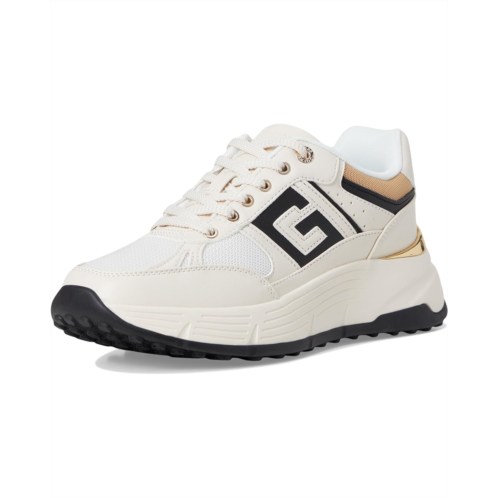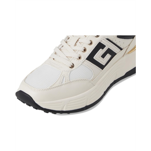 - The Guess Fonzi takes you to a new level of style and comfort. This platform, lace-up sneaker features an oversized G logo and a gold rand on the heel that keeps you on trend while staying comfortable. Crafted from rubber upper, synthetic lining, and synthetic sock, it comes with round toe, and low top silhouette.