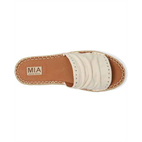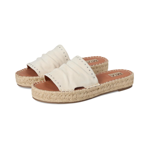 - Walk comfortably and stylishly in the MIA MLE-Dahya Flat Sandals, crafted in an easy slip-on style. The open round-toe flats are designed with a suede upper with stud detailing, faux leather lining, and a faux leather insole.