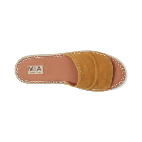 - Walk comfortably and stylishly in the MIA MLE-Dahya Flat Sandals, crafted in an easy slip-on style. The open round-toe flats are designed with a suede upper with stud detailing, faux leather lining, and a faux leather insole.