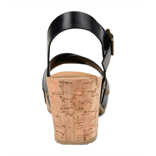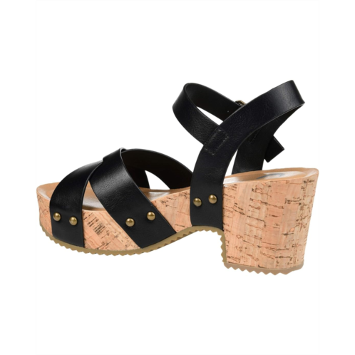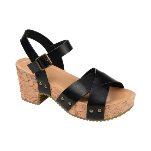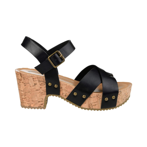 - The statement making Journee Collection Comfort Foam Valentina Sandals feature a faux leather upper with a cork-inspired sole for a unique and stunning look.