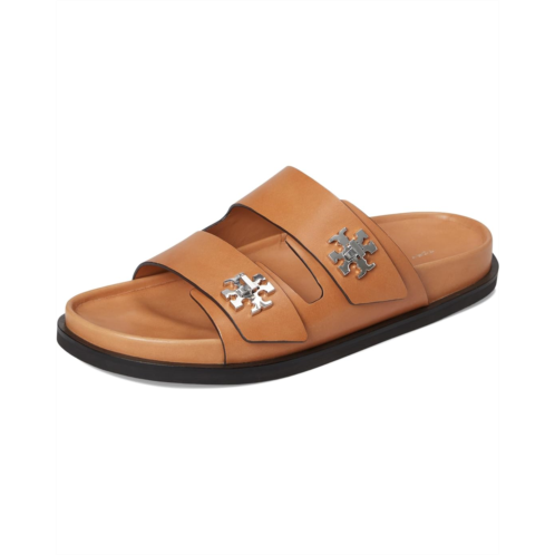 - Comfortable and stylish, the Tory Burch T Lock Sport Slides are designed for your everyday wear. These flat sandals are made of leather insole and lining. Their leather upper features dual hook-and-loop straps with signature details. These slide sandals are perfect to pair with your casual outfits and styles.