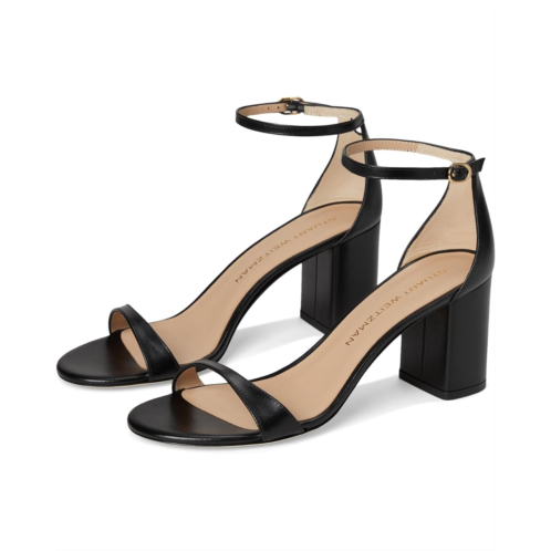 - Where style meets grace wear this beautiful footwear Nudist Block 75 by Stuart Weitzman Crafted with a sleek leather upper, lining, and insole, this stunning heel provides a sophisticated finish to any outfit. The stiletto heel adds the perfect amount of lift, while the buckle ankle strap ensures a secure and comfortable fit. With an open toe design, this shoe is your go-to for effortless glamor at every occasion.