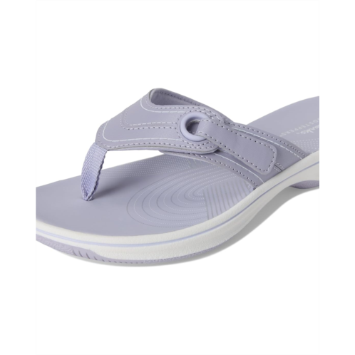 - The Clarks Breeze Reyna sandals are part of the Clarks Cloudsteppers collection, so you know that total underfoot comfort is a sure thing. Built for summer holidays and lazy weekends in the back garden, these flip-flops are crafted with a soft nylon upper for a skin-gentle feel while the grippy foam outsole makes for confident support, great grip, and easy-breezy steps. Their mesh lining keeps your feet cool and comfortable. These slide slippers are designed with a cushion Soft PU foam footbed that delivers shock absorption and comfort.
