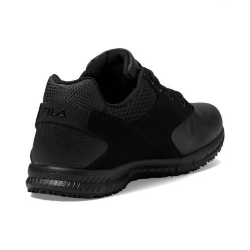 - Experience lightweight comfort wearing the Fila Memory Layers Slip Resistant. Crafted from textile and synthetic upper, this pair of shoes features round toe, lace-up closure, metal eyelets, v notch achilles heel wrap. It comes with memory plus footbed with COOLMAX fiber that offers superior oil and slip-resistance protection.