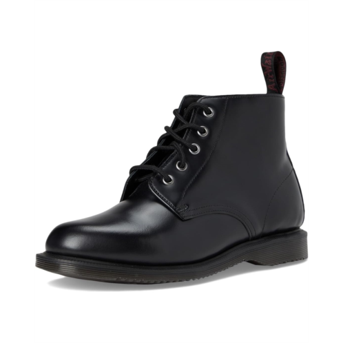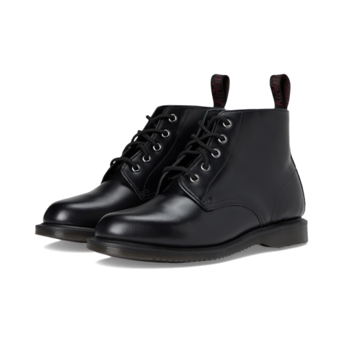 - With a low profile and refined almond toe design, the Dr. Martens Emmeline Leather Lace-Up Boots are infinitely wearable and ready to dress up or down. The upper of these boots are made from Arcadia leather, a high-shine leather with a base dye and contrasting topcoat, that's rubbed off to reveal the underlying color. These combat boots are crafted with an EVA insole and feature Goodyear welted construction for added durability. Built on the iconic Dr. Martens air-cushioned outsole that is oil-and-fat resistant with good abrasion and slip resistance, these lace-up ankle boots are designed for your outdoor rides.