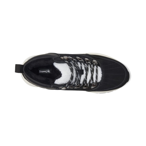 - Take every step with improved comfort and style wearing the Sanuk Apres Me Shoes. Tropically applied water-repellent treatment combines with this nubuck mid-cut construction, along with faux shearling tongue, toe, and heel protection. Gusseted tongue helps to keep the elements out. High pile fleece lining keeps the coziness in, while the athletic midsole paired with durable rubber outsole allows for easy outdoor transition.