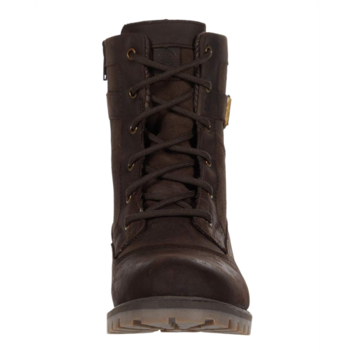 - Traditional lace-up system with woven fabric laces and sturdy metal eyelets for a secure fit.