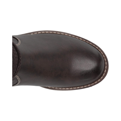 - Features a round toe, decorative lateral zipper, ruched shaft and rope detail at ankle.