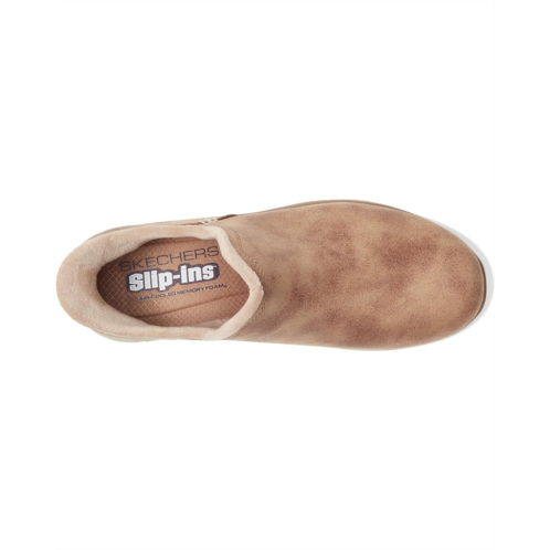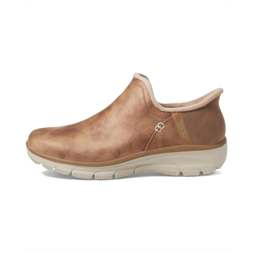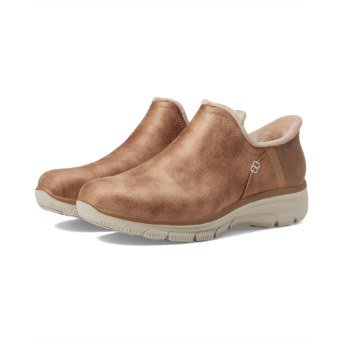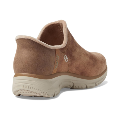 - Let your feet feel in comfort by wearing the SKECHERS Easy Going - Modern Hour - Hands Free Slip-Ins shoes. The boots are designed with exclusive Heel Pullow technology for maximum comfort. The round-toe hiker bootie style features a 3M Scotchgard treated synthetic upper with a faux-fur trim, and a cushioned Skechers Air-Cooled Memory Foam insole.