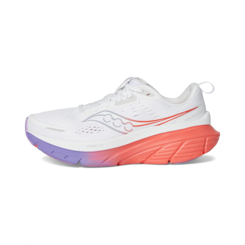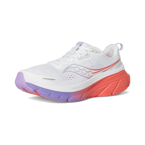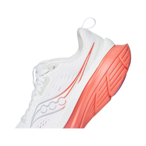 - Power through your day sporting the Saucony Guide 18, a perfect fusion of style, support, and all-day comfort. Featuring a premium leather upper for durability and a sleek look, this sneaker keeps you cool with its breathable mesh design and soft nylon lining. The EVA insole cradles your foot with plush comfort, while VERSARUN cushioning absorbs impact, reducing pressure for a smooth ride. A sturdy rubber outsole offers superior grip and durability, keeping up with your every move. With a offset and a secure lace-up closure, this shoe is built for effortless, stable strides-wherever life takes you!