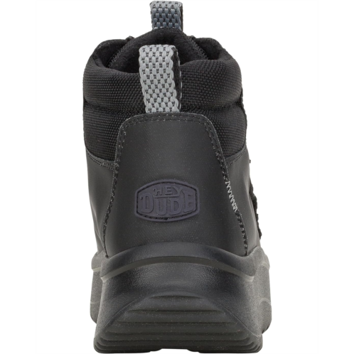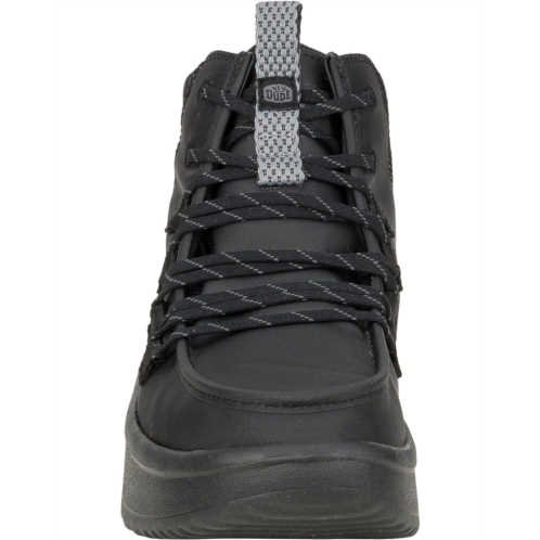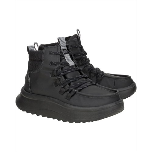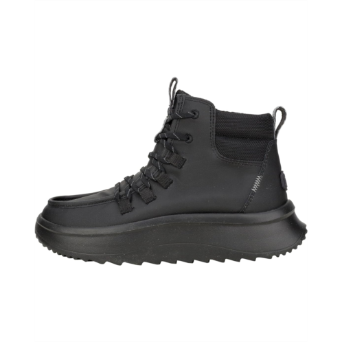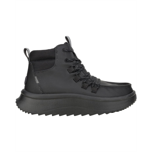 - Walk into the Hey Dude Wendy Peak Apres Coated Twill, where water-resistant, premium leather uppers keep your feet warm and stylish, no matter the weather. Enjoy the fabric lining and cushioned EVA insole for ultimate comfort, while the lightweight, flexible rubber outsole ensures effortless movement. With a round toe and easy slip-on design, these ankle-high booties offer practical elegance and seasonal flair with lace design, making them your go-to choice for any adventure.