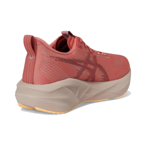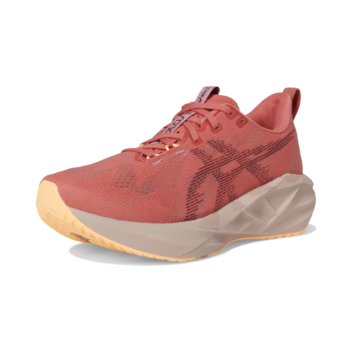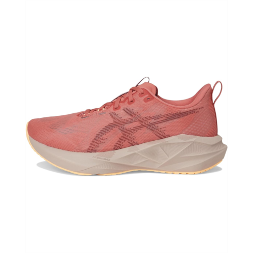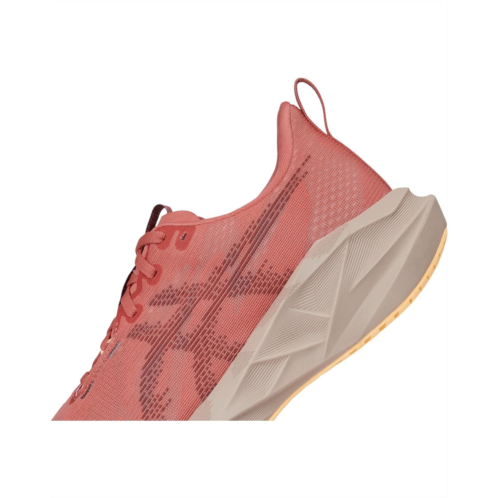 - The ASICS Novablast 5 shoes' midsole and outsole geometry help produce an energized ride. Their tongue wing construction in the polyester upper helps improve the fit while reducing tongue movement. These running shoes are made of a rubber insole and polyester lining. At least 75% of the shoe's main upper material is made with recycled materials to reduce waste and carbon emissions while the sockliner is produced with the solution dyeing process that reduces water usage by approximately 33% and carbon emissions by approximately 45% compared to the conventional dyeing technology. The FF BLAST MAX cushioning helps create softer landings and more energized toe-off during your training. These lace-up shoes are complemented with an engineered jacquard upper that offers more stretch, ventilation, and durability.