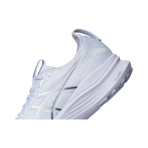 - Introducing the ASICS GEL-Kayano 32 shoes, the pinnacle of support and comfort. Their FF BLAST PLUS foam midsole is combined with a higher midsole stack height while reducing the weight to provide a more balanced experience, making your training feel smoother and more comfortable. The engineered polyester upper features a lace-up closure and a knit heel pull tab for an easy put-on and take-off. These lace-up shoes feature a 4D GUIDANCE SYSTEM that helps provide adaptive stability for a more supportive and balanced stride during your distance training. They are made of an OrthoLite X-55 polyester insole and polyester lining. The Rearfoot PureGEL technology of these shoes allows movement in multiple planes as the foot transitions through the gait cycle, while the reinforced tongue wing along the arch also provides additional comfort and support. Get ready for a comfortable day out with these running shoes.