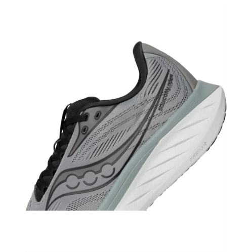 - The Saucony Ride 18 is the core neutral cushioning training shoe. Built as the most versatile shoe in the line, it brings premium foam innovation and comfort that feels as good and on a 10 mile run as it does in a session at the gym or a well-earned recovery walk. Crafted from leather upper, nylon lining, and EVA insole, this pair of shoes features round toe, lace-up closure, and brand detailing on the tongue, footbed, and heel counter. This pair of neutral cushioning shoes have a traditional hourglass shape to provide a well cushioned ride but with a nimble transition from heel to toe.