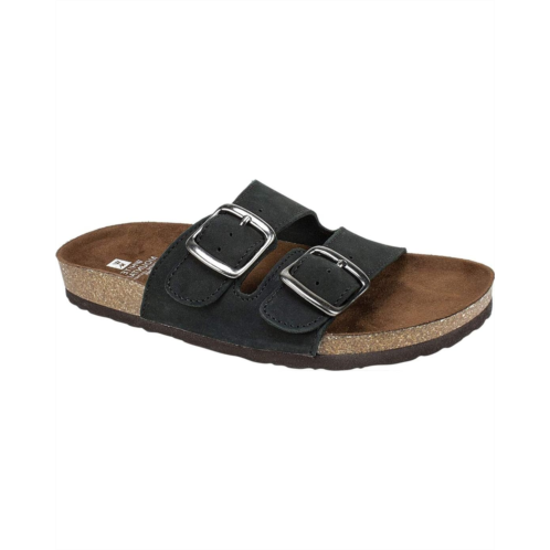 - Easy slip-on construction in an open toe design with a durable leather upper.