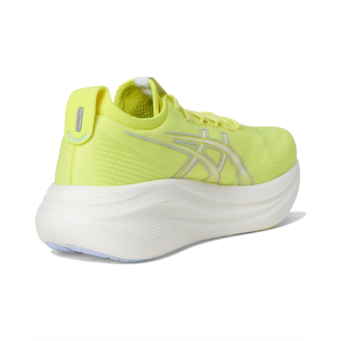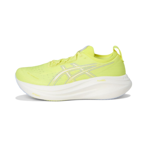 - The ASICS GEL-Nimbus 27 shoes soft cushioning properties help you feel like you're landing on clouds. This design is revamped to help create a softer and smoother running experience. A soft engineered jacquard mesh upper comfortably wraps your foot while supplying advanced ventilation. Additionally, the knitted tongue and collar help provide a soft and supportive feel. By using FF Blast Plus Eco Cushioning, this trainer creates a lighter and softer cushioning experience with enhanced focus on sustainability. Lastly, Hybrid ASICSGRIP outsole rubber helps create better traction, improved softness, and advanced durability.