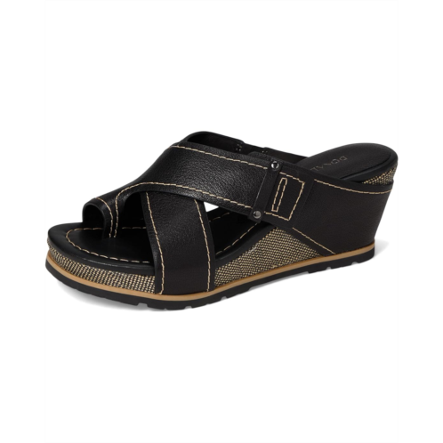 - Equip your feet with unparalleled comfort and flexibility while depicting your elegant fashion sense wearing the Donald Pliner Irini Wedge Sandals. Topped with soft leather crossband upper straps, the shoes are integrated with memory foam cushioned leather insole for a comfortable wear and a lightweight raffia-covered or cork wedge for added style. They come in an easy slip-on style with a toe ring and hidden elastic on the straps.