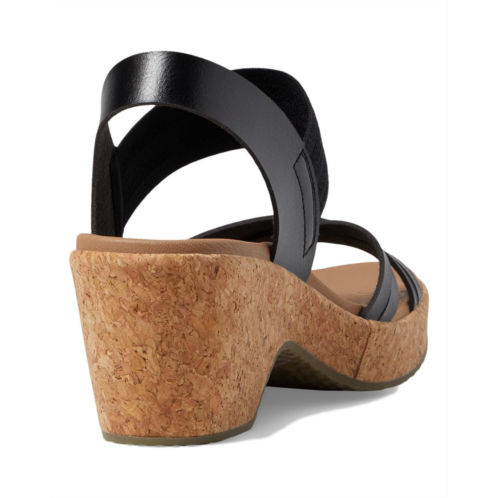 - Make a stylish statement wearing the SKECHERS Brystol - Night Skies. Crafted with vegan materials, this strappy wedge sandal features a synthetic upper with a pull-on gore strap, and a cushioned Luxe Foam footbed. It comes with brand detailing on the footbed.