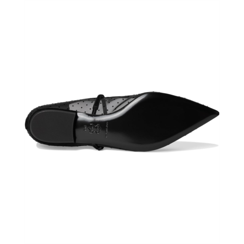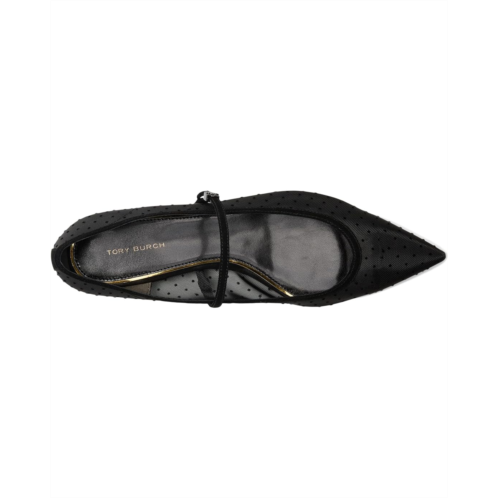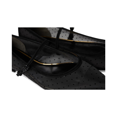 - Make a statement wearing the Tory Burch Double T-Buckle Mary Jane. The mesh upper with all-over polka dots and contrasting suede trim not only adds a fun element but also showcases your unique sense of style. Featuring leather lining and insole, these flats are as comfortable as they are fashionable. The pointed cap toe design offers a timeless look, while the adjustable arch strap with buckle closure ensures a perfect fit. Complete with a slim heel, these Mary Janes are perfect for any occasion.
