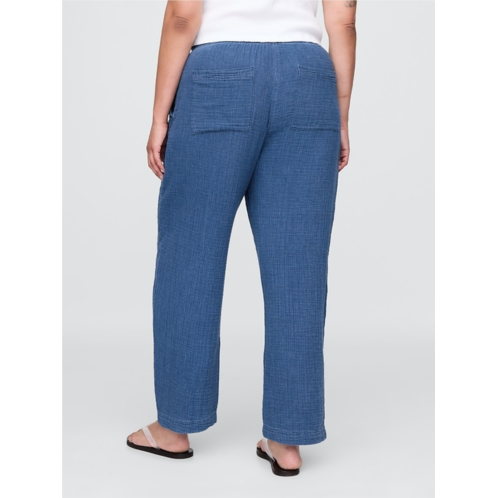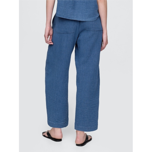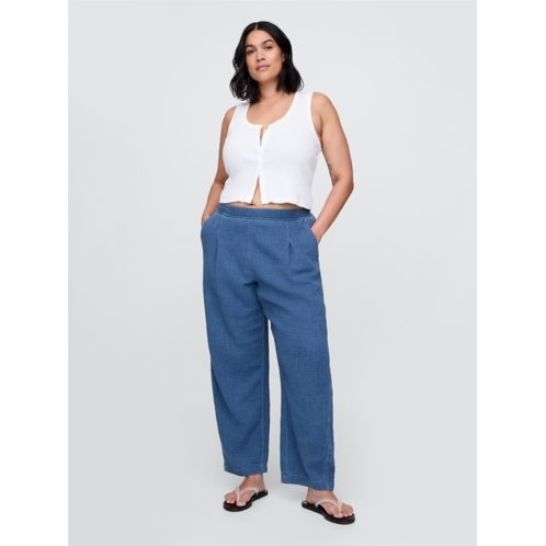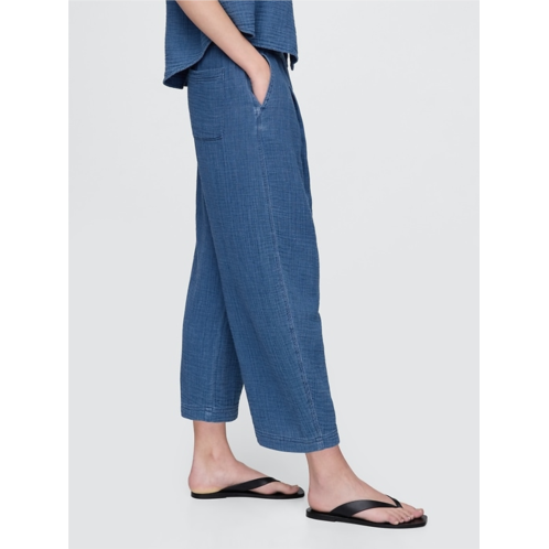 - Soft cotton gauze denim easy barrel pants.