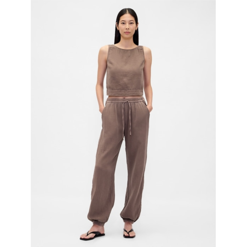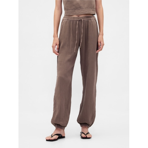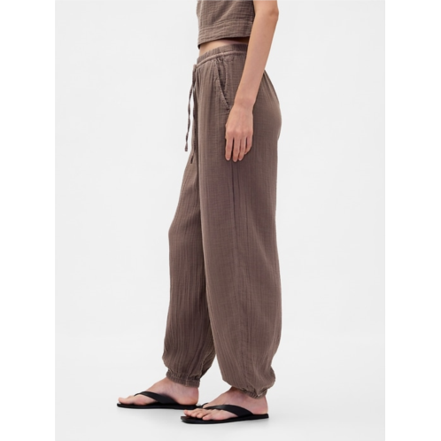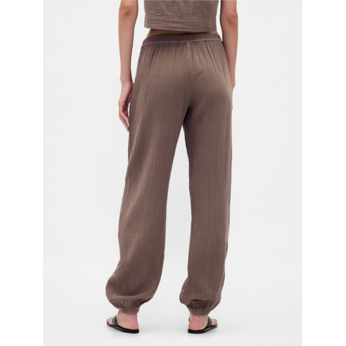 - Soft cotton gauze easy-on barrel joggers in a relaxed fit.