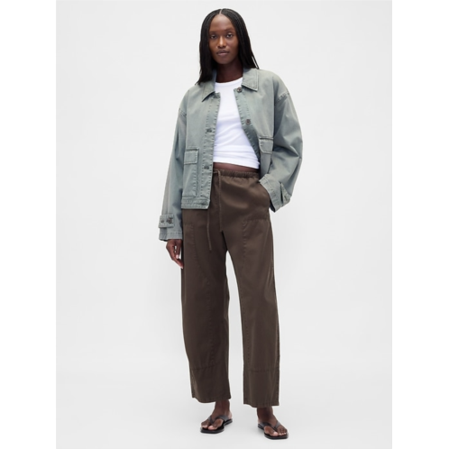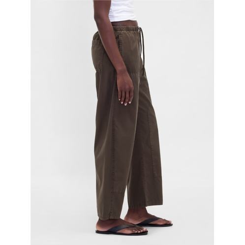 - Soft cotton twill easy-on barrel pants.