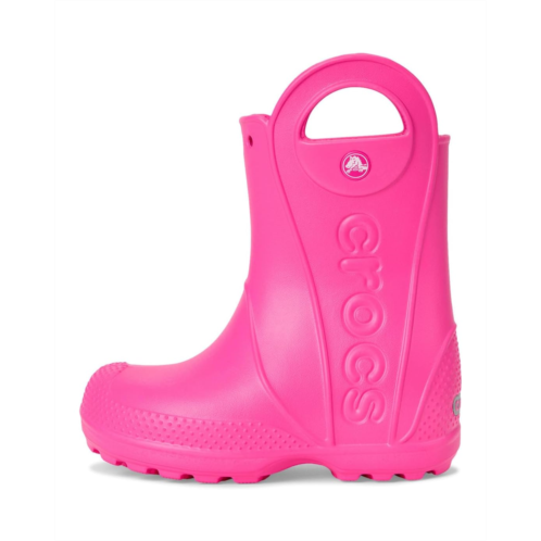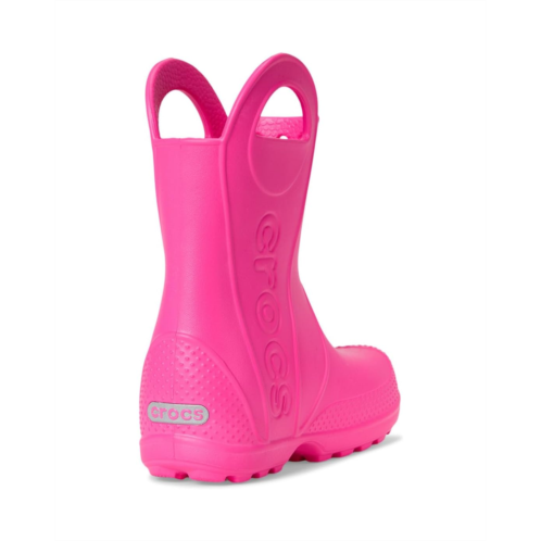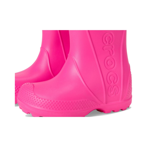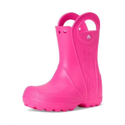 - Now kids can enjoy classic Crocs comfort - even on the rainiest days. These Crocs Kids Handle It Rain Boots with a waterproof build keeps puddle-jumping feet cozy and dry. The oversized handles make it easy for kids to take these boots on and off, and they also include a reflective heel logo for safety. This version features a fixed rainbow embellishment and squishy EVA clouds. The calf-high boots are crafted from EVA upper, insole, and outsole. These girl's and boy's rain boots are a parent's dream - a simple wipe or rinse, and they're good as new!