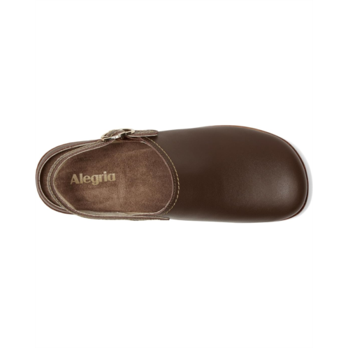 - Practical meets fashionable with the Alegria Olie, a sling-back leather clog. This twist on a timeless classic features a stain-resistant upper, padded sling-back strap with an adjustable buckle, and slip-resistant polyurethane outsole. This style also provides comfort with a durable microsuede removable footbed that can easily take it from medium to wide.