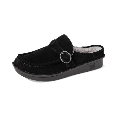 - With a super comfy sherpa lining and backless slip-on design, the Alegria Brigid is sure to keep your feet feeling good all day.