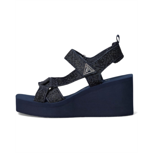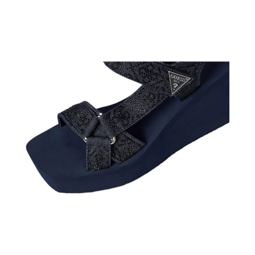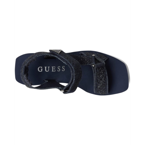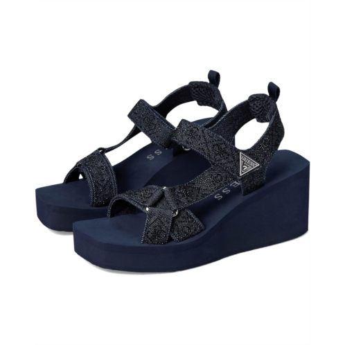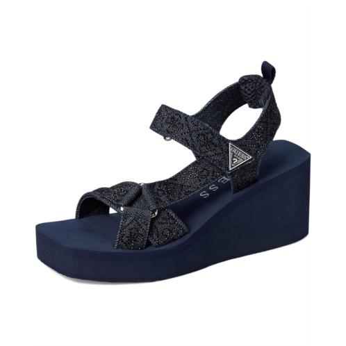 - GUESS puts its signature stamp on the Dasein EVA sandals. This GUESS Dawsin sandals of the warm-weather is adorned with rhinestone embellished straps on top of a comfortable wedge heel. Est. 1981, Guess is a global lifestyle brand and a symbol of a young, adventurous lifestyle. Crafted from denim upper, textile lining, and padded footbed.
