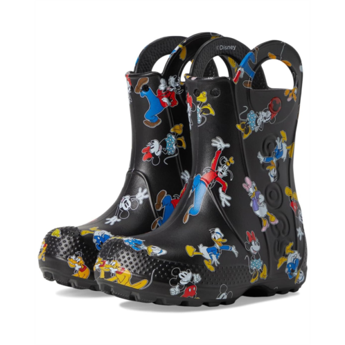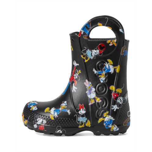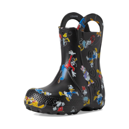 - Now kids can enjoy classic Crocs comfort - even on the rainiest days. These Crocs Kids Handle It Rain Boots with a waterproof build keeps puddle-jumping feet cozy and dry. The oversized handles make it easy for kids to take these boots on and off, and they also include a reflective heel logo for safety. This version features a fixed rainbow embellishment and squishy EVA clouds. The calf-high boots are crafted from EVA upper, insole, and outsole. These girl's and boy's rain boots are a parent's dream - a simple wipe or rinse, and they're good as new!