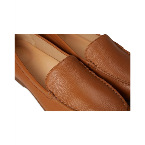 - Finesse your look with the suave splendor of Dansko Lorri Flats. The pull-on footwear features tumbled leather upper, low stacked heels for optimal support, and round toe silhouette with durable moccasin construction.