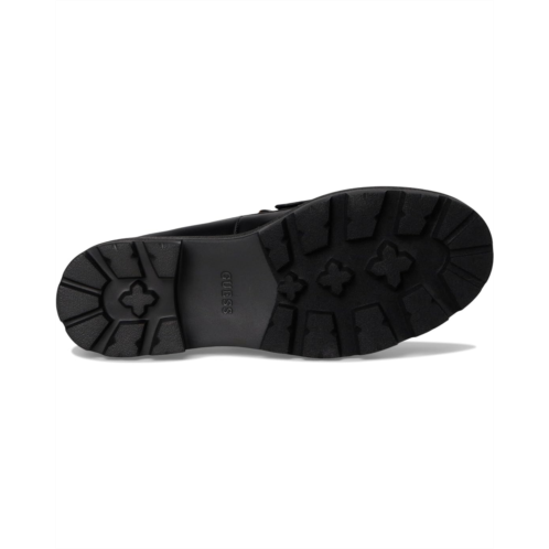 - The Guess Yanika Loafer makes a cool statement while keeping it casual. Set on a chunky lug sole, this slip-on style loafer is accented with 'G' logo hardware to make this an eye-catching style. It features an EVA upper, synthetic rubber lining, and a leather sock insole. The chunky block heel adds a little height to your look.